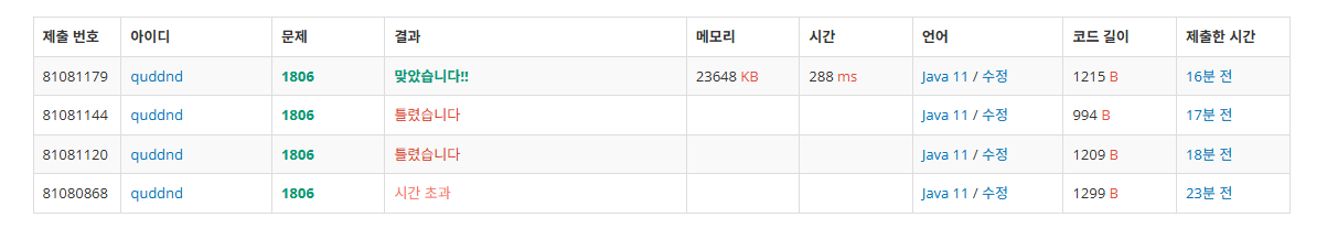 일단 처음에 모든 과정을 검색하는 브루트포스를 사용해보았다.