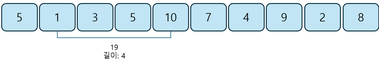 다음 것도 15를 넘기 때문에 누적 합에서 왼쪽 포인터만 뺀 것을 알 수 있다.