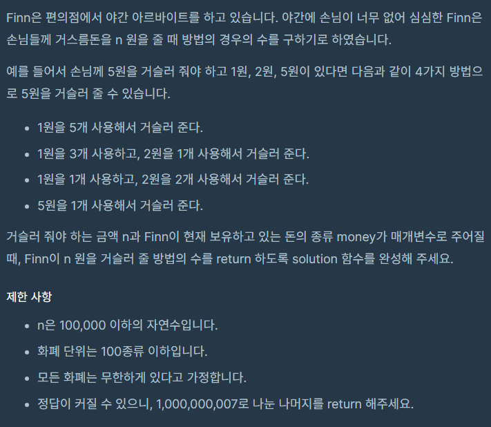 [Programmers]LV.3 거스름돈 본문