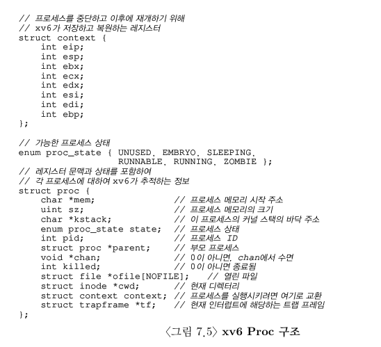 예를 들어 프로세스 상태를 파악하기 위해 준비 상태의 프로세스들을 위한 프로세스 리스트와 같은 자료구조를 유지합니다.