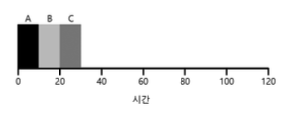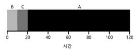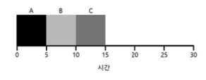 예를 들어 다음과 같은 경우 B가 10초에 왔을 때 A는 0 B는 0 C는 10이 되어 3.33의 응답 시간을 가진다.