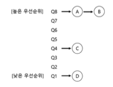 - 실행 준비가 된 프로세스는 이 중 하나의 큐에 존재한다.