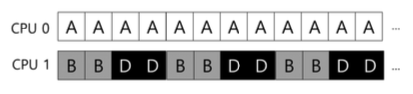 딱봐도 좋은 방법이 아니다. 효율적이기 위해서는 B나 D가 CPU0에서 진행되는게 효율적일 것이다.