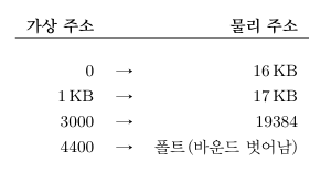 위 예제에서 볼 수 잇듯이 물리 주소를 얻기 위해서 가상 주소에 16KB를 더한다. 이 16KB가 바로 베이스 주소이다.