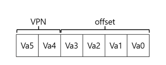 프로세스가 생성한 가상 주소의 변환을 위해 먼저 가상 주소를 가상 페이지 번호(VPN)와 페이지 내의 오프셋 2개의 구성 요소로 분할한다.