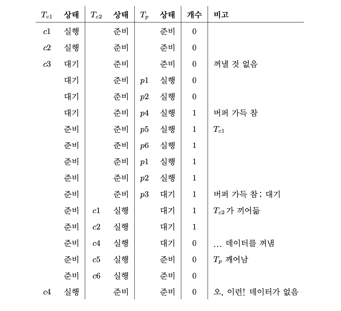 - 조건: count == MAX이면 생산자는 대기, count == 0이면 소비자는 대기.
