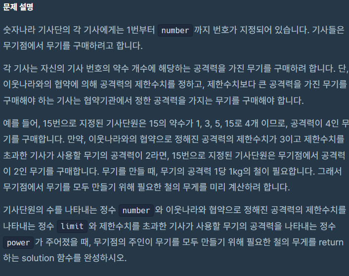 * 3. 시간초과 - 어느 부분에서 시간복잡도를 줄어야함. -> 약수 계산?