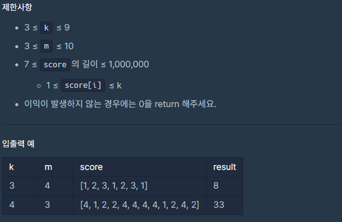 사과의 최대 점수 k