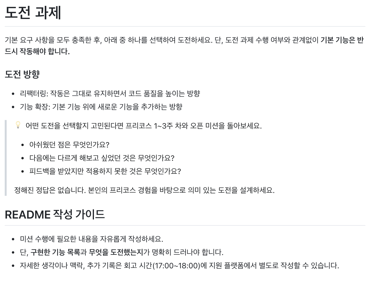 도전 과제는 리팩토링과 기능 확장 중에서 골라야합니다.