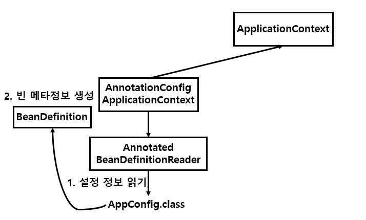 - new AnnotationConfigApplicationContext(AppConfig.class) 를 통해 스프링 컨테이너를 생성한다.