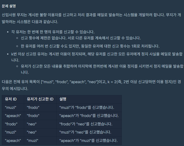 신고 당한 횟수는 그냥 해쉬맵을 사용하였다.