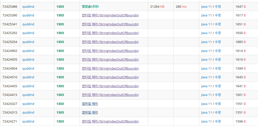 StringIndex 에러 때문에 머리아파 죽는줄 알았다 ㅋㅋㅋ
